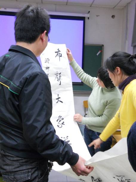 讲座即将结束时,由主持人向柳华东博士献上了该校博士生联合会精心准备的对联,以表达对柳博士的敬意和感谢!上联是:净瓶碧柳,点化东风能济世;下联是:希声大象,从来上智最无华。将柳华东博士所学专业以及目前的职业及美德含在对联中,非常生动。讲座结束后柳博士还应邀参观了首都师范大学遗传与生物工程重点实验室,就同学们实验过程中遇到的具体问题做了详细的讲解与指导。