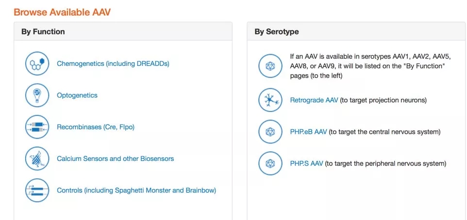 • Viral Service page (links to our current AAV and lentiviral inventory)