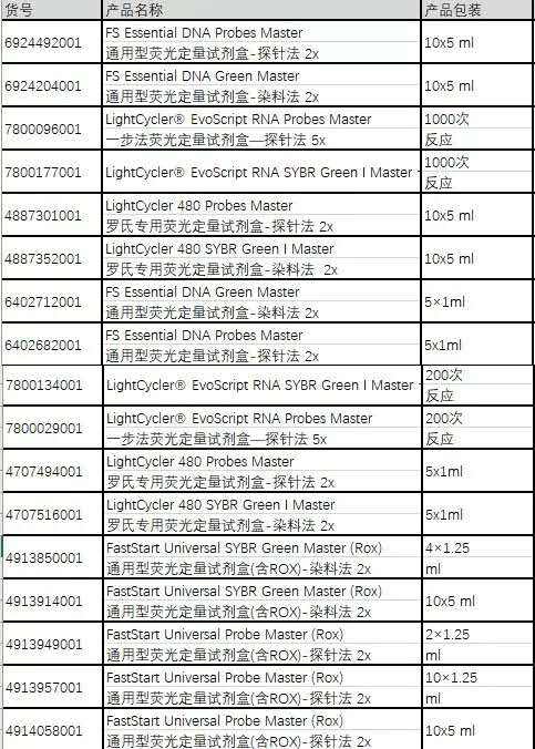 当然如果您的仪器需要进行ROX校正,才能得到准确的荧光结果,罗氏也能提供另外一系列试剂:FUMM预混液(含ROX校正染料)。