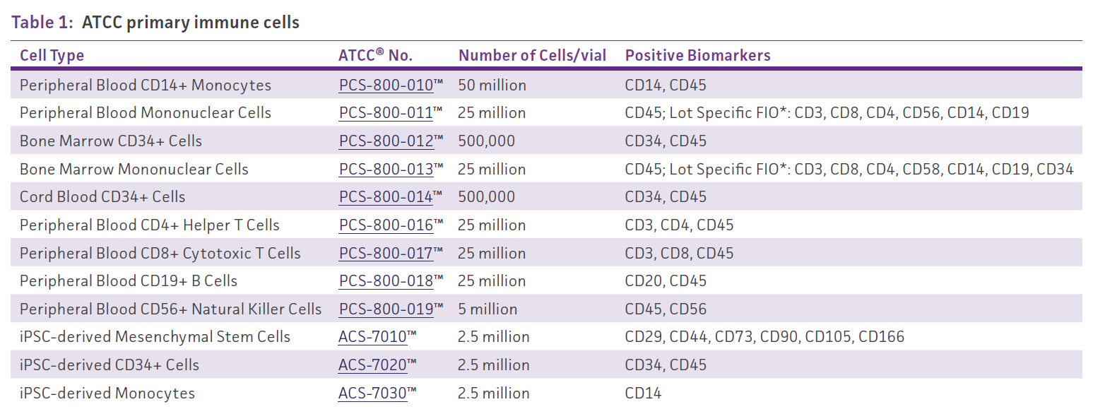 表1 ATCC人类原代免疫细胞