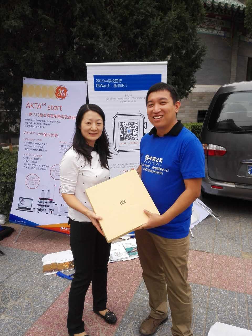2015年9月22日,“中原校园行”系列活动,在中国医学科学院基础所举办。活动当天,虽然天公不作美,随时都有可能下雨。但仍然阻挡不了老师和同学参加的热情。活动展台前人头攒动,大家都纷纷拿出手机参与活动,领取属于自己的幸运大奖。